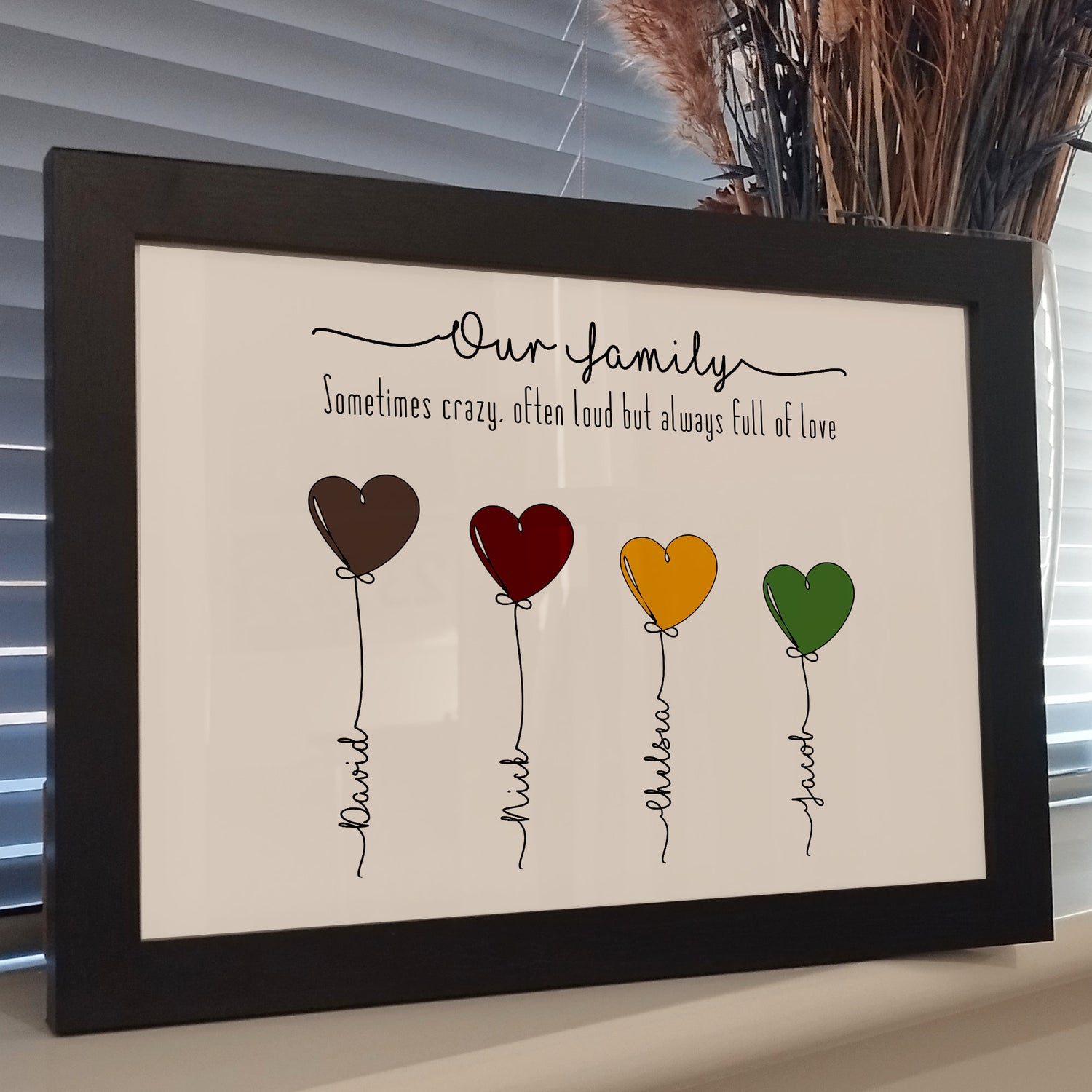 Personalised Family Balloon Print | Our Family Portrait Print | Digital Family Home Wall Art | Family Gifts for Mothers