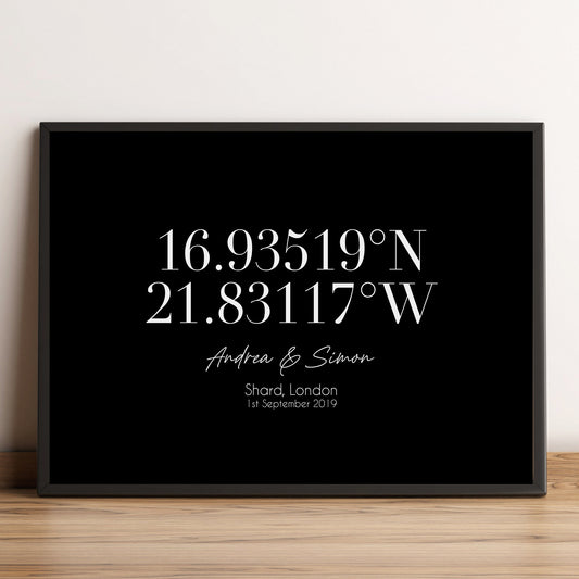 Framed Wedding Location Prints, Custom Coordinates Print, Latitude Longitude, Wedding Gift, Personalised Gift for Couple, Memorable Location