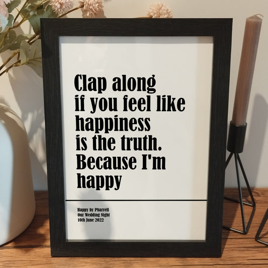 Custom Song Lyric Print | Personalised Music Lyric Wall Art | Wedding First Dance Song Lyrics | Anniversary Print Gifts for Couples