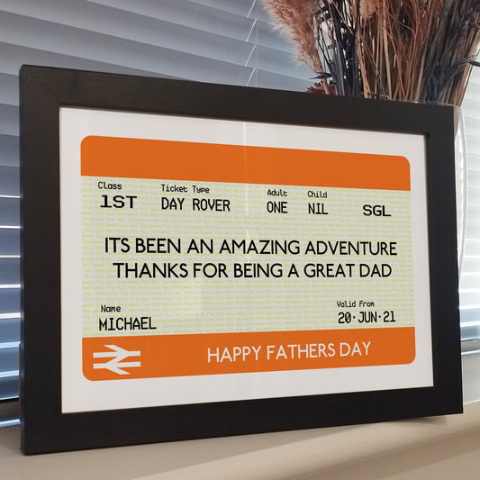 Custom Railway Train Ticket Print | Personalised British Rail Ticket Gift for Him, Dad or Boyfriend | Perfect Travel Gift for Retirement