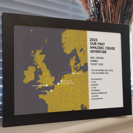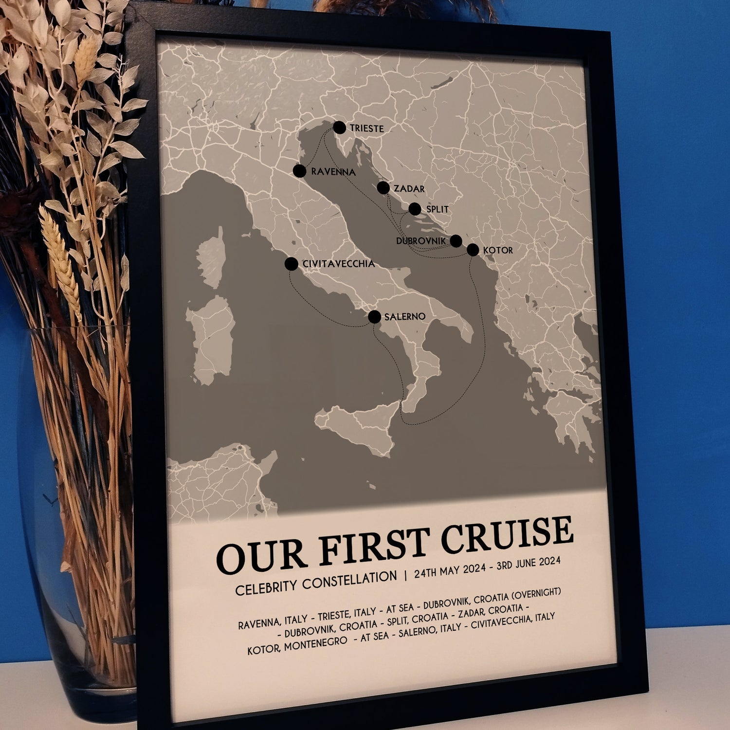 Custom Cruise Holiday Map Gift for Couples | Personalised Cruise Ship Ports Map Wall Art Anniversary Print for Her Wife Him Husband