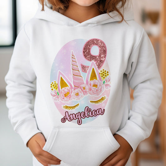 Personalised Unicorn Birthday T-Shirt | Any Name Any Age Rose Gold | Custom Unicorn Themed Hoodie | Girls Birthday Shirt