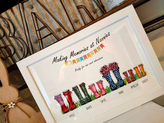 Custom Welly Boot Print Gift for Family | Personalised Wellington Boot Family Portrait | Wellies Home Wall Art for Mothers and Grandmothers