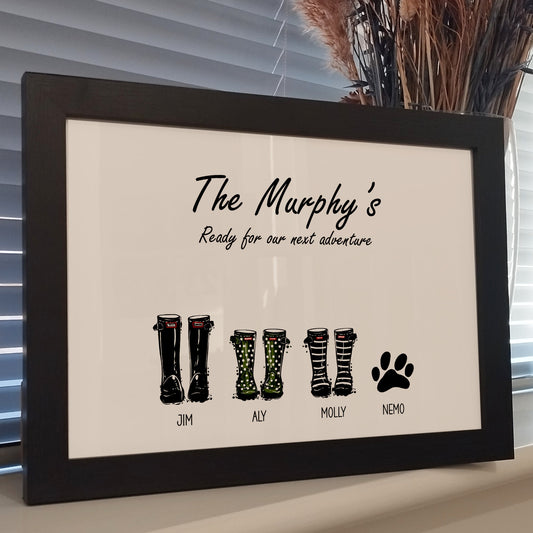 Personalised Family Welly Print | Framed Family Wellies Print | Custom Family Portrait | Paper Anniversary Gifts | Family Shoes Print