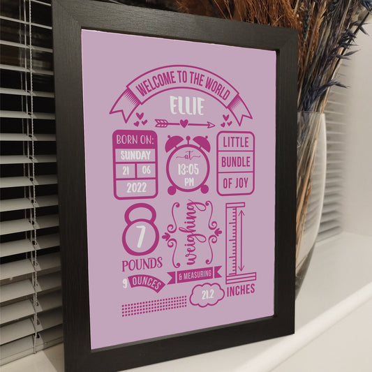 Personalised Baby Birth Stats Print, Baby Birth Announcement Wall Art, New Born Baby Gifts, Mothers Day Gifts, Gift for Mum and Dad