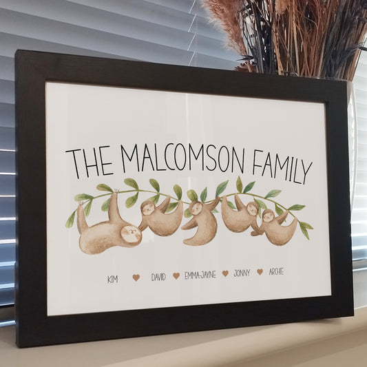 Personalised Family Sloth Print | Unique Sloth Family Gifts | Home Nursery Decor | Presents for Mum | Custom Family Names Print