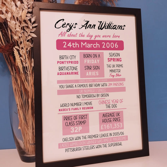 Personalised Day You Were Born Print, Baby and Children Birthday Wall Art, Mothers Day and Fathers Day Gifts, Gift for Mum and Dad