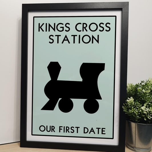 Personalised Monopoly Board Railway Station Print | Custom Monopoly Family Framed Gift for Couples | Unique Monopoly Train Station Wall Art