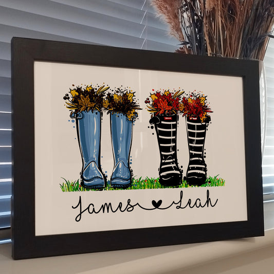 Personalised Wellies Print | Custom Family Shoes Print | Unique Welly Boot Print | Paper Anniversary | Romantic Gifts for Her