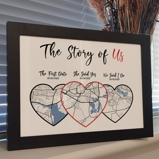 Custom Our First Date Print | Personalised Map Wedding Prints | 1 Year Paper Anniversary | Where We Met Map Print | Gifts for Couples