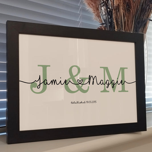 Personalised Couples Names & Initial Print | Paper Anniversary Gift | Engagement Gifts | Custom Wedding Prints | Romantic Gifts for Him