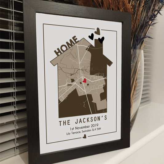 Custom Our New Home Map Print | Personalised First Home Anniversary Gift | Home is Where the Heart is Print | New House Wall Art for Couples