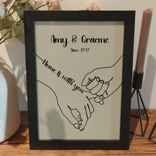 Personalised Couples Hands, Custom Anniversary gift, Framed Line Drawing of Two Hands holding, Paper Anniversary Print, Custom Names