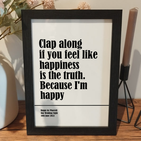 Personalised Song Lyric Print | Custom Music Lyric Wall Art | Wedding First Dance Song Lyrics | Anniversary Print Gifts for Couples