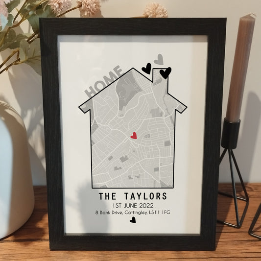 Our First Home Custom Map Print | Personalised New Home Anniversary Gift | Home is Where the Heart is Print | New House Wall Art for Couples