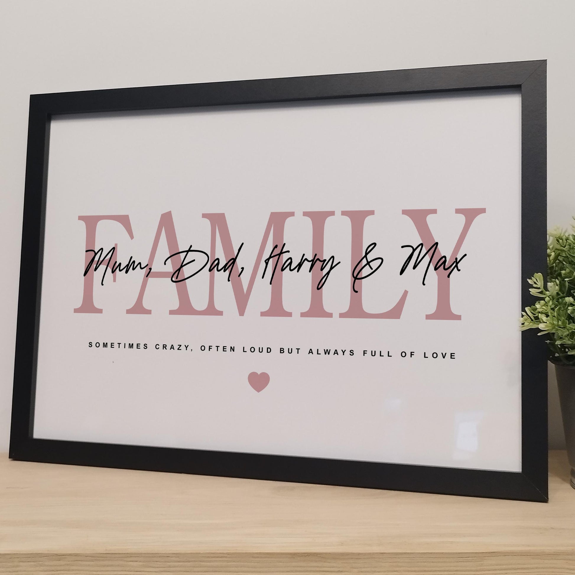 🌟 Customised Family Names Print. A lovely family Print Perfect for Birthdays and Mother's Day. Available Framed in a variety of sizes including 5x7, A4 and A3.