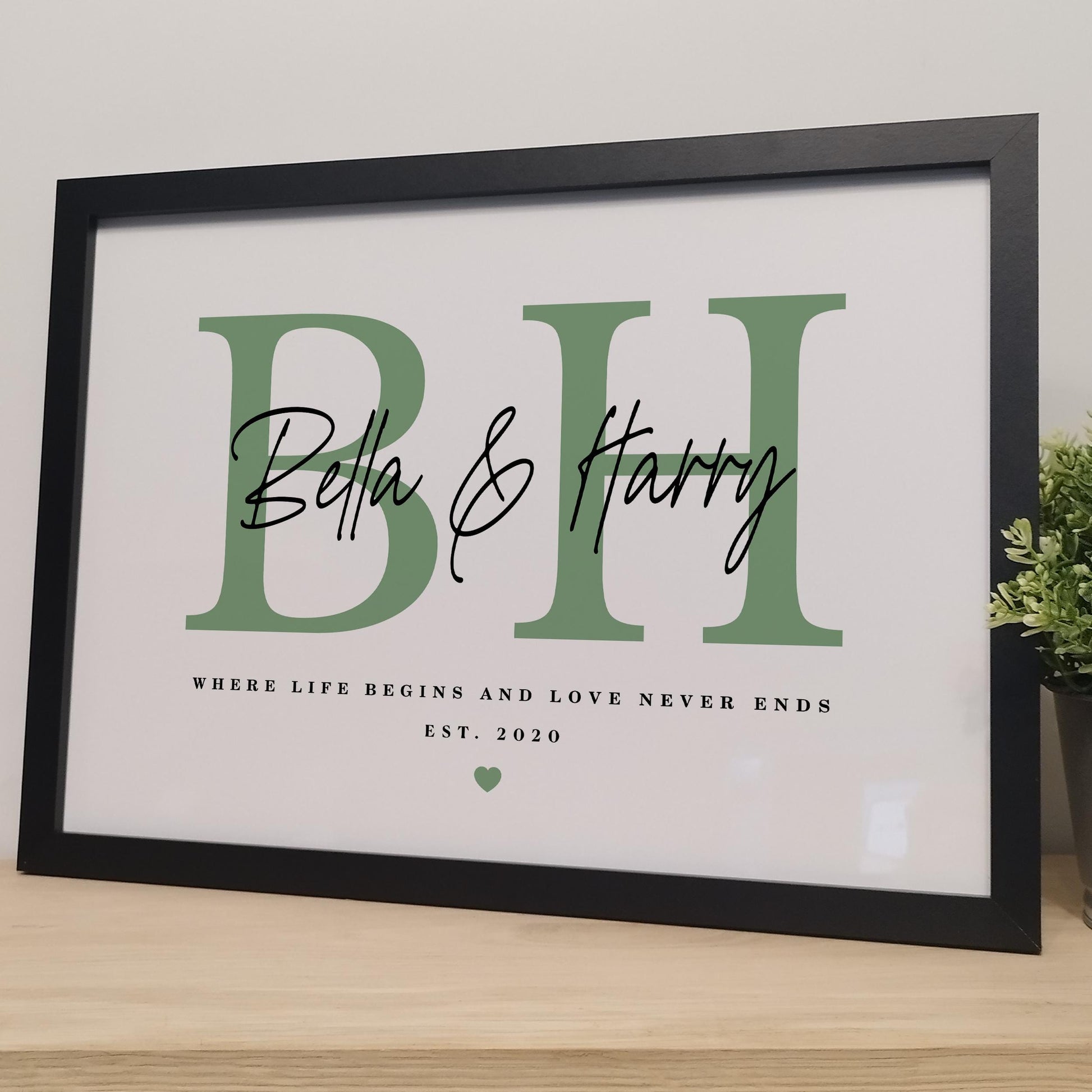 π Customised Initial Couples Print. A Romantic Love Print Perfect for Anniversaries. Available Framed in a variety of sizes including 5x7, A4 and A3.