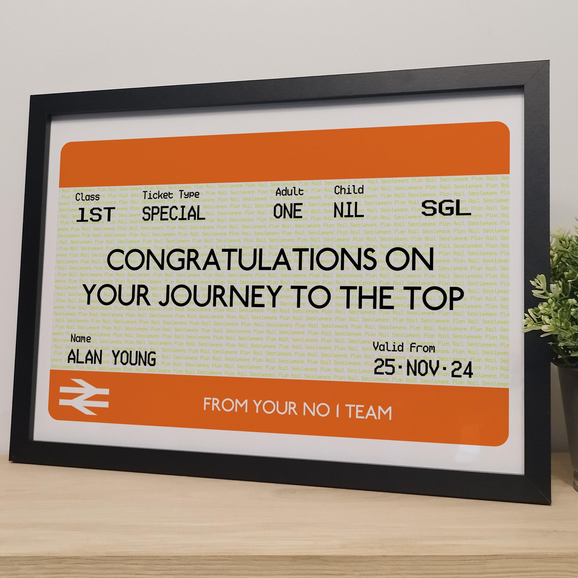 🌟 Custom Railway Train Ticket Print, Personalised Railway Gift for Him. Available Framed in a variety of sizes.