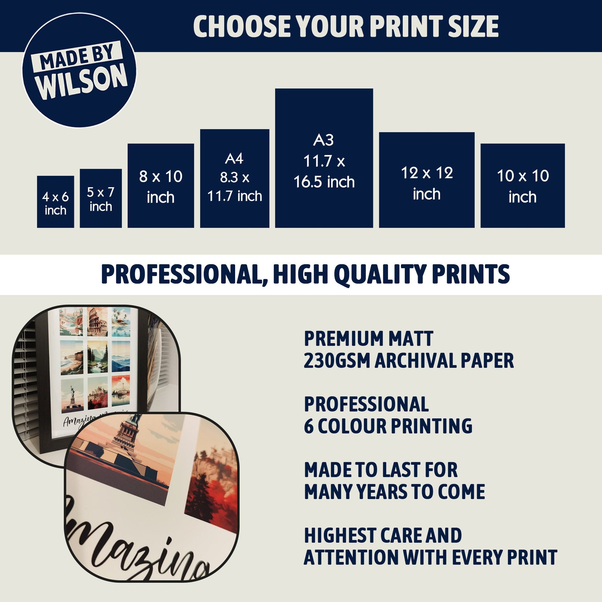 Each print is professionally printed on high-quality archival paper using vibrant, fade-resistant inks to ensure a long-lasting beautiful design.