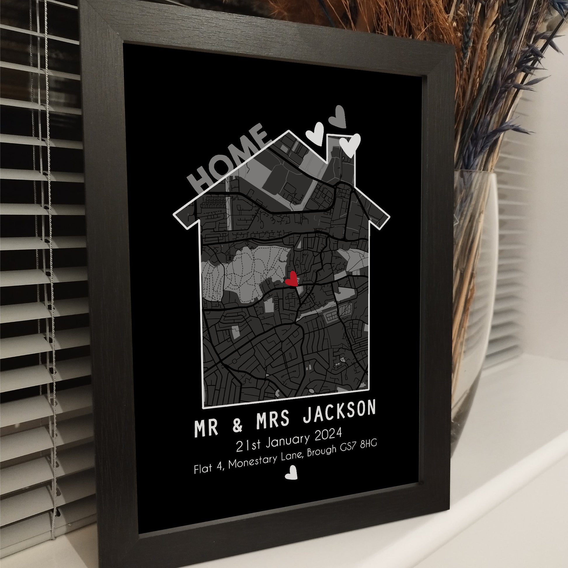 Treat your wife, husband or friends with a unique housewarming wall art print, perfect for every occasion. From birthdays, weddings and anniversaries, to housewarming gifts, mothers day and Christmas. A framed new home map print is the perfect choice.