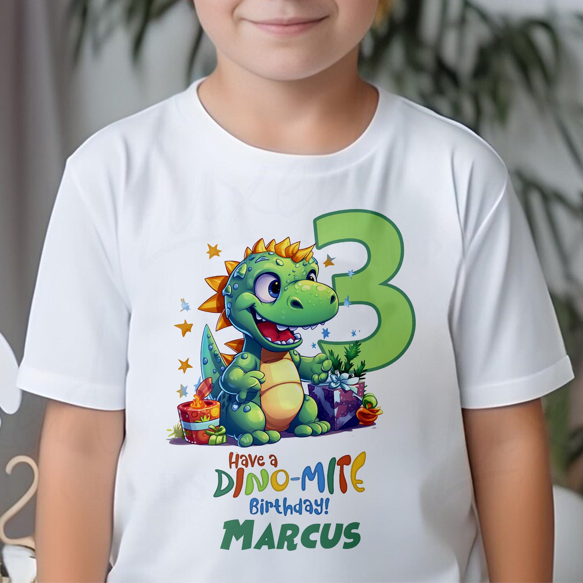 Personalised Dinosaur Birthday T-Shirt | Any Name Any Age | Colourful Dinosaurs | Custom Dinosaur Birthday Gifts for Children