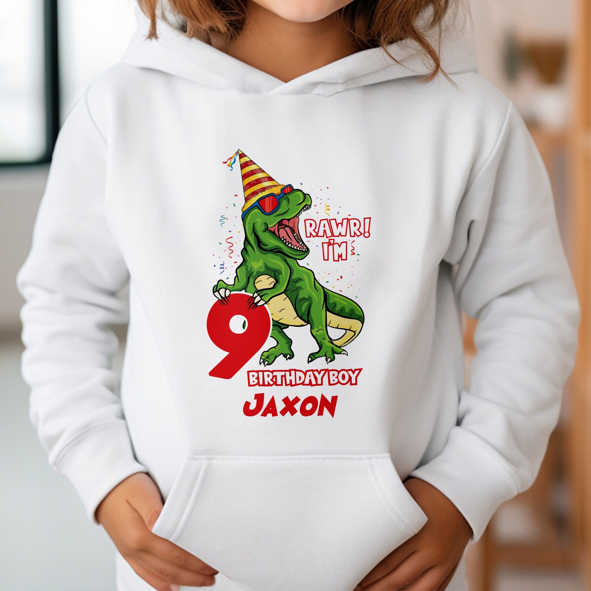 Treat your son, daughter or any child on their birthday with a unique custom T-Rex t-shirt, perfect for every occasion. From birthdays and holidays to Christmas. A custom made birthday dinosaur hoodie is the perfect choice!
