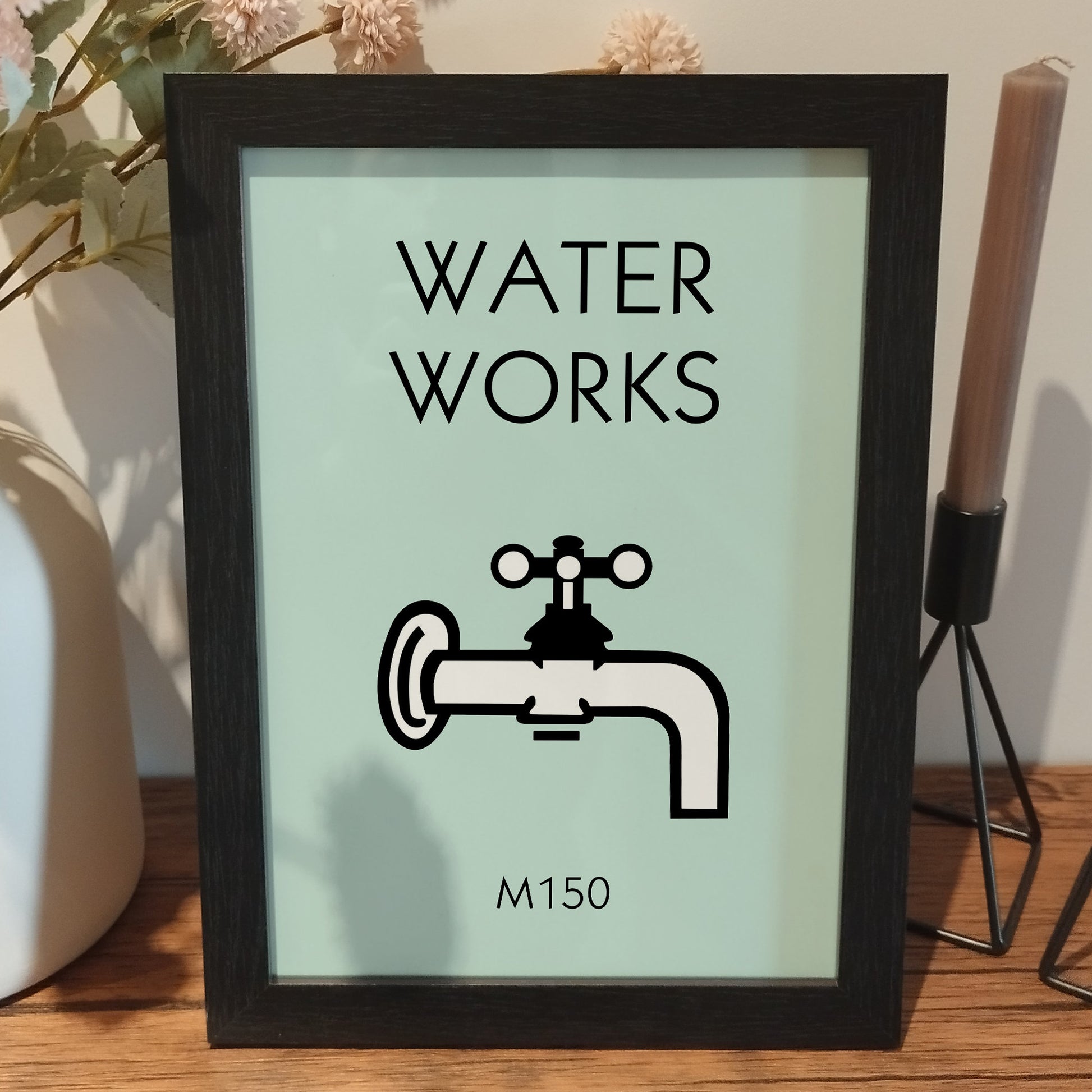 Personalised Monopoly Water Works Print | Custom Monopoly Board Framed Gift | Unique Monopoly Energy House Print | Bathroom, W.C House Print