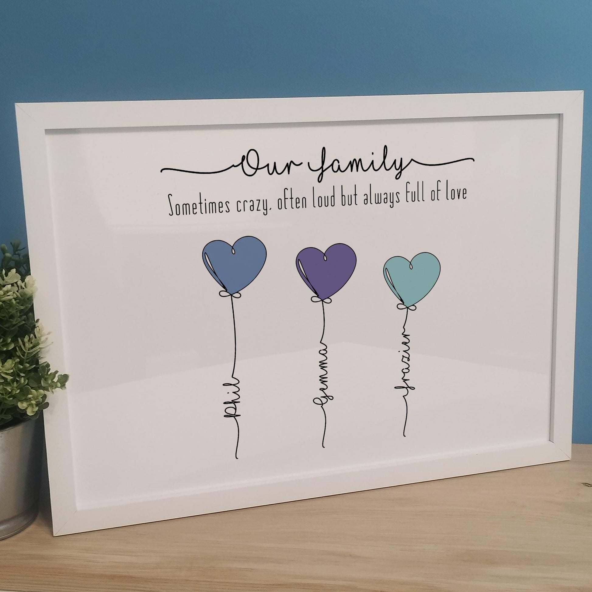 🌟 A Beautiful Personalised Our Family Balloon Print. Available Framed in a variety of sizes including 5x7, A4 and A3.