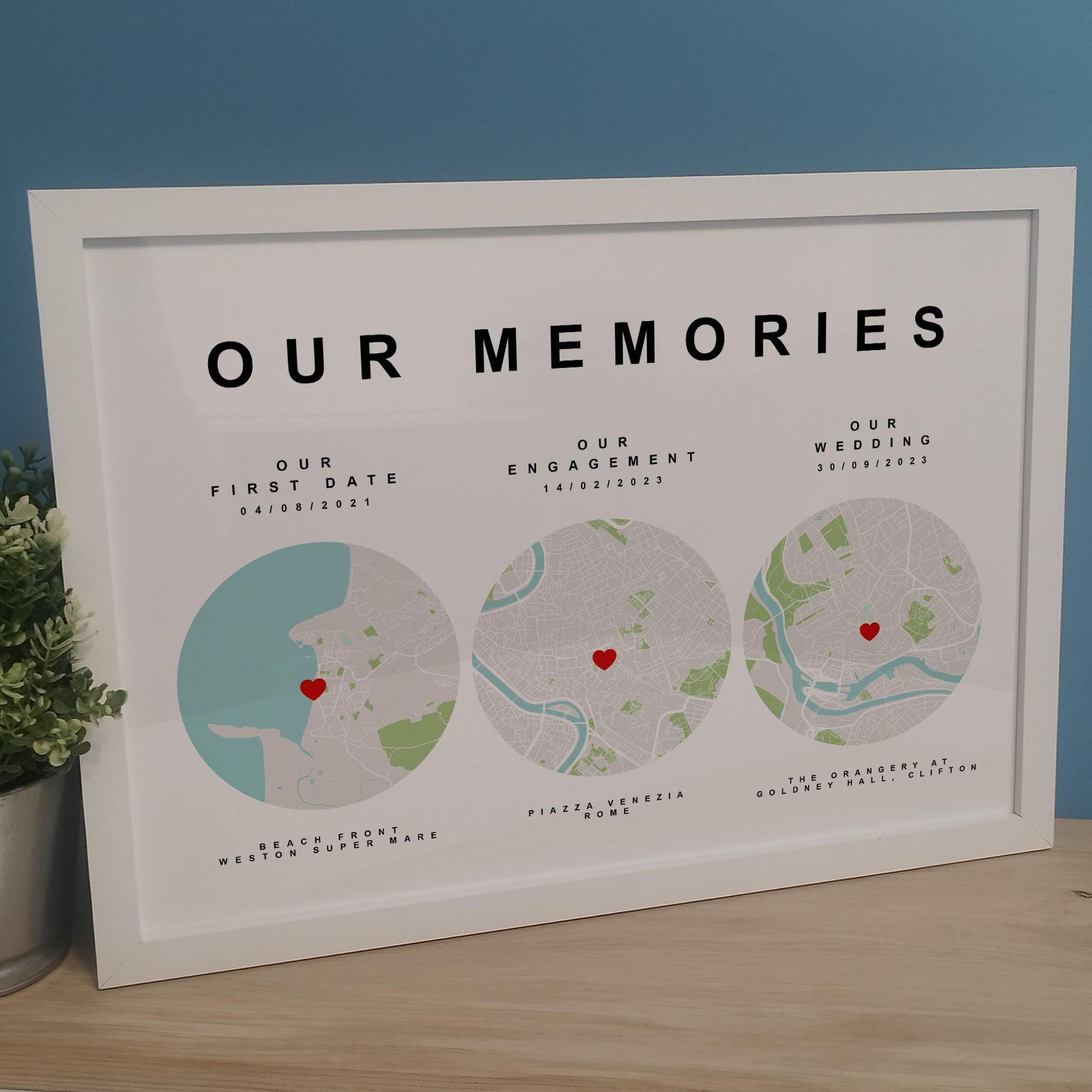 🌟 A Beautiful Personalised Where We Met Map Print. Available Framed in a variety of sizes including A4, A3, 8x10 and 5x7.